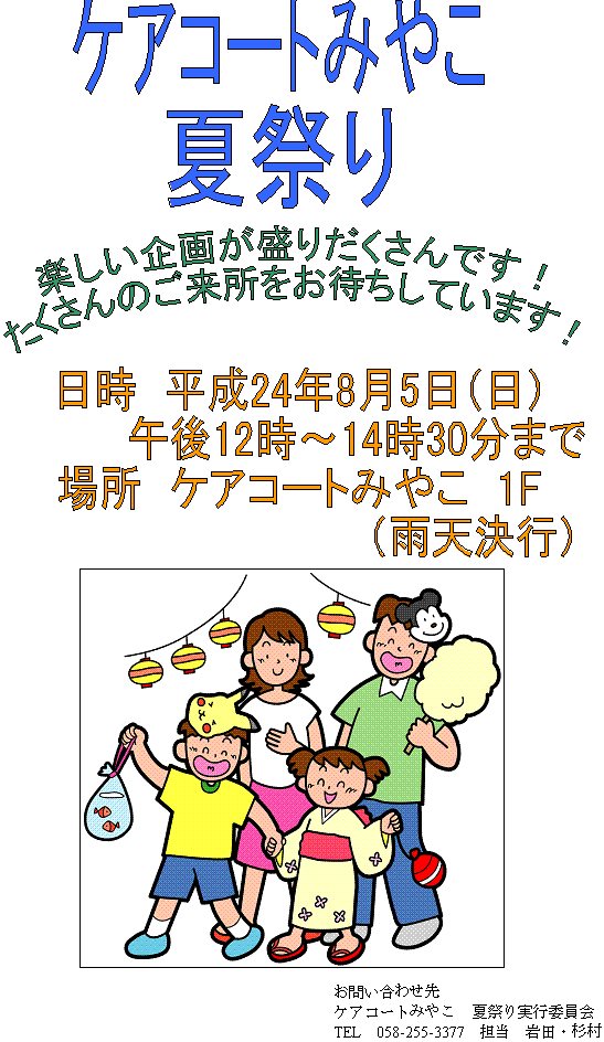 みやこでは8月5日日曜日に夏祭りを開催します。